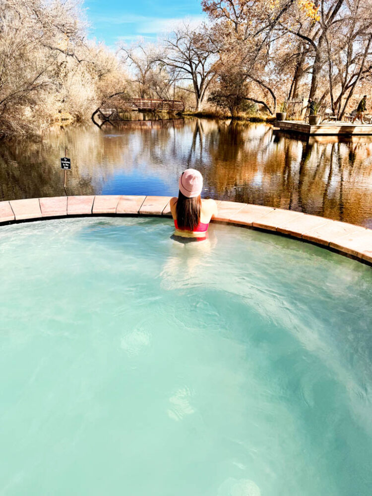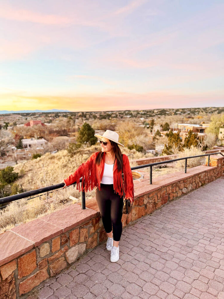 Favorite moments included running through the white gypsum sand in White Sands National Park, soaking in hot springs along the Rio Grande River in T or C, sipping all the margaritas in Santa Fe, seeing petroglyphs and climbing ladders in Bandelier, admiring art by the famous Georgia O’Keefe, exploring Old Town Albuquerque, and riding up the Sandia Peak Tramway at sunset.