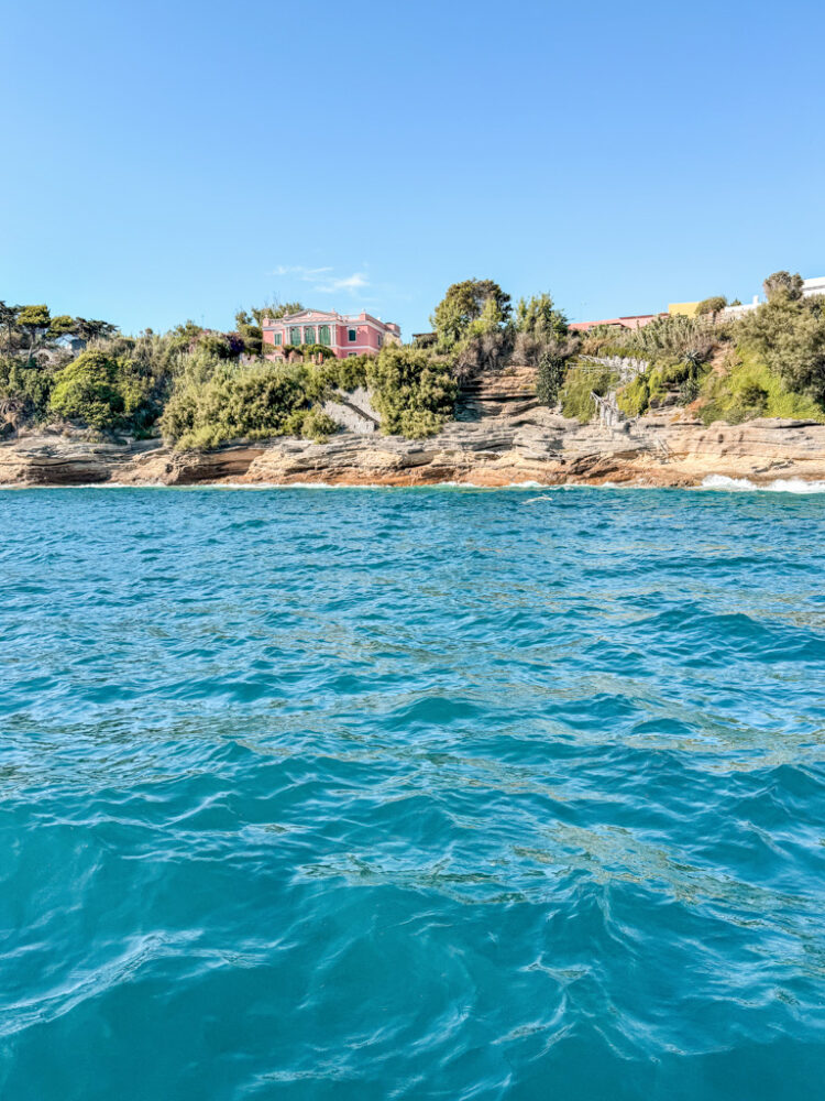 We cruised past landmarks like the Palazzo D’Avalos perched on its cliff, the Cave of the Marine Ox in Punta dei Monaci, Carbonchio Bay, the Bourbon Palace, Chiaiozza and its natural pool, Vivara Island, Postman Beach (Pozzovecchio), and the Punta Pioppeto Lighthouse.