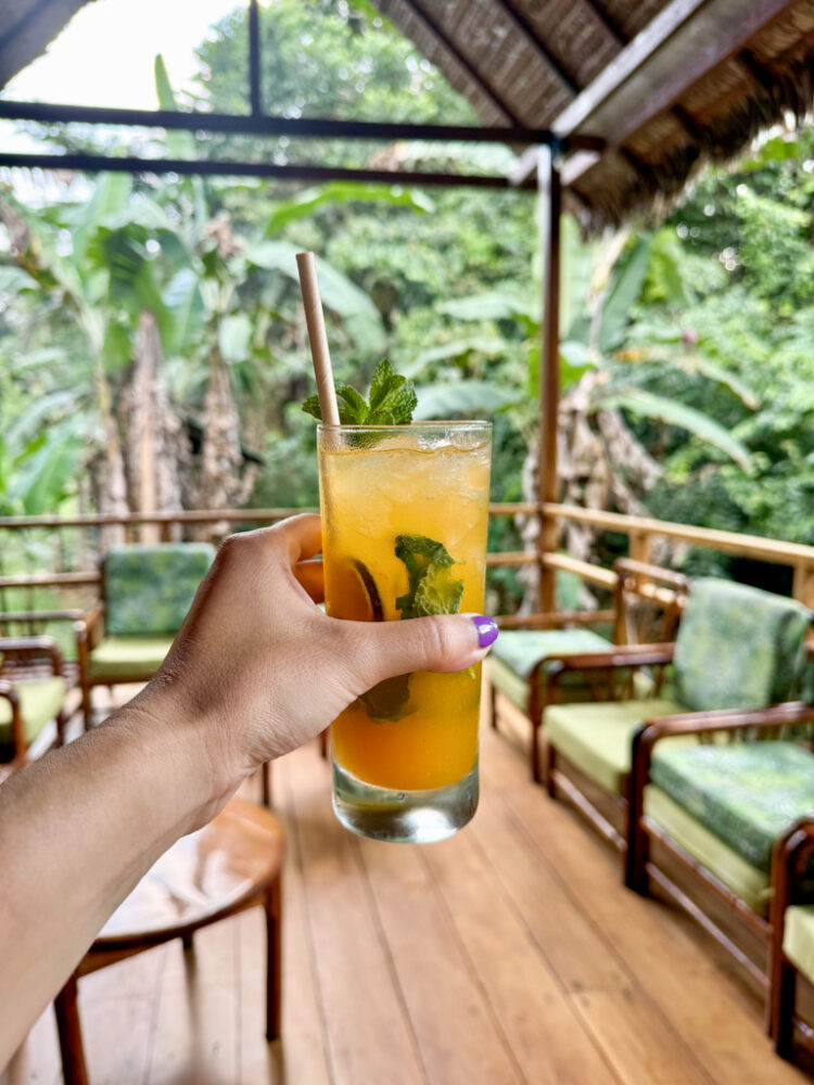 Water is technically potable, but it had a slightly brownish tint, so I personally didn’t risk it. Luckily, you can buy bottled water, soft drinks, and cocktails at the bar. Speaking of which, do yourself a favor and order a passionfruit mojito – refreshing, fruity, and the perfect way to end a long day of jungle exploring.