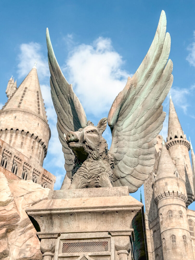 - Flight of the Hippogryph: This is the park’s only outdoor rollercoaster, and you fly around Hagrid’s hut and past Hagrid’s magical creatures. Honestly, it’s not worth waiting if the lines over 20 minutes long – the ride is literally a 20 second mini roller coaster and is over in a flash (womp, womp). It definitely has great potential but was very (very) meh to us and kinda a dud.