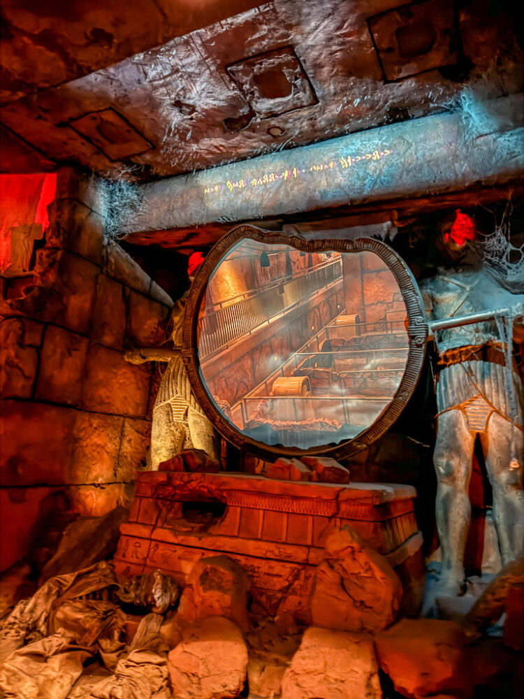 - The Mummy: Easily our favorite ride in the entire park – and probably the most thrilling (which is definitely why we loved it oh so much). At first it’s very deceiving, but then BAM – you’re off! It’s actually an indoor roller coaster totally inspired by The Mummy film franchise – expect mummies, scarab beetles, and other dangers.