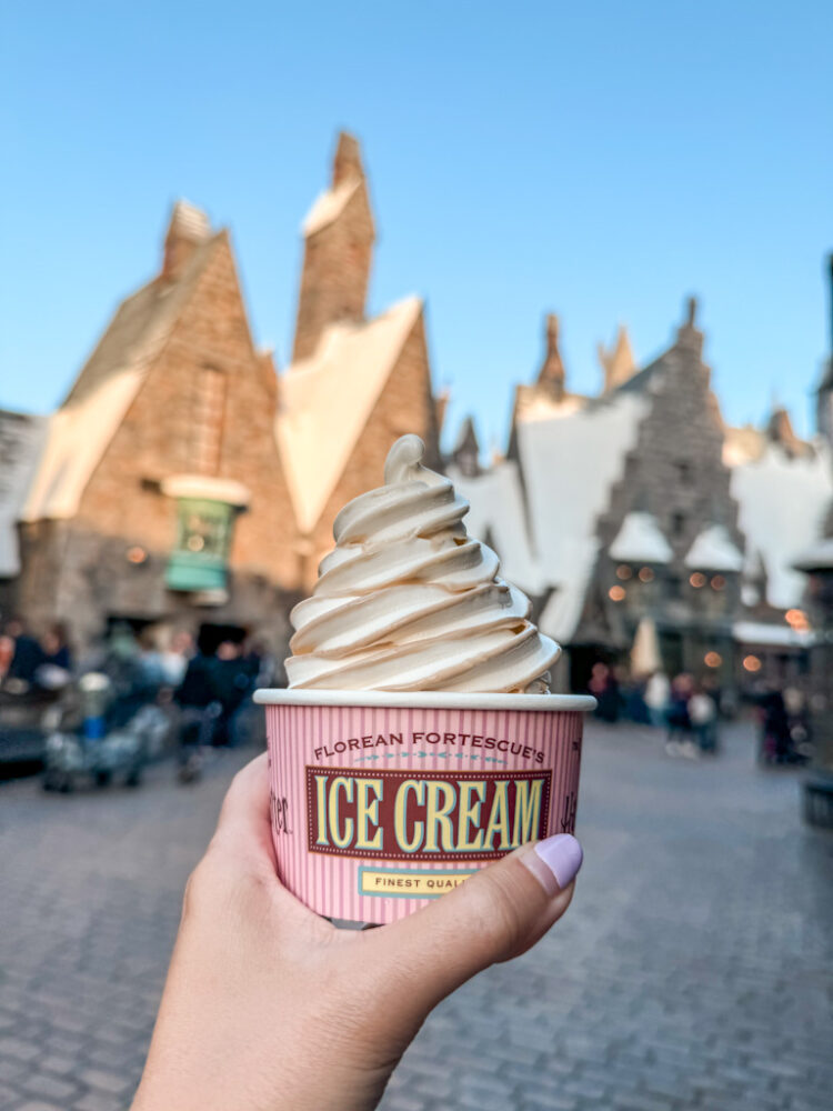 - Butterbeer soft ice cream: 5/10 (didn’t taste the butterbeer flavor too much, but the vanilla was yummy and the texture was perfect, haha)